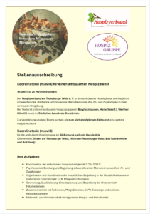 Männern und Frauen, die alle dasselbe Ziel haben: Menschen auf ihrem letzten Weg zu begleiten, Hilfe und Unterstützung zu bieten, sei es durch Gespräche oder einfach nur „da zu sein“, ganz nach den Wünschen und Bedürfnissen der Betroffenen und deren Zugehörigen.