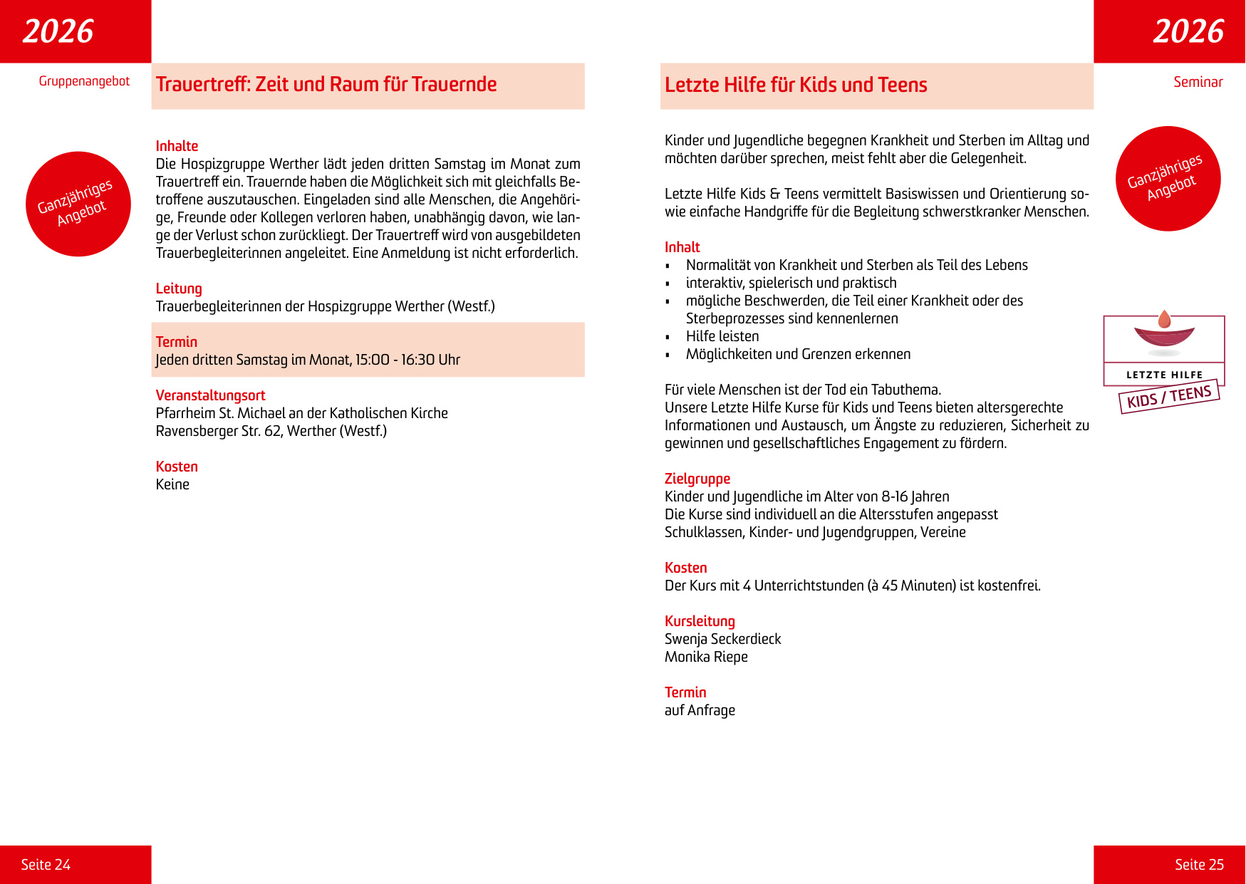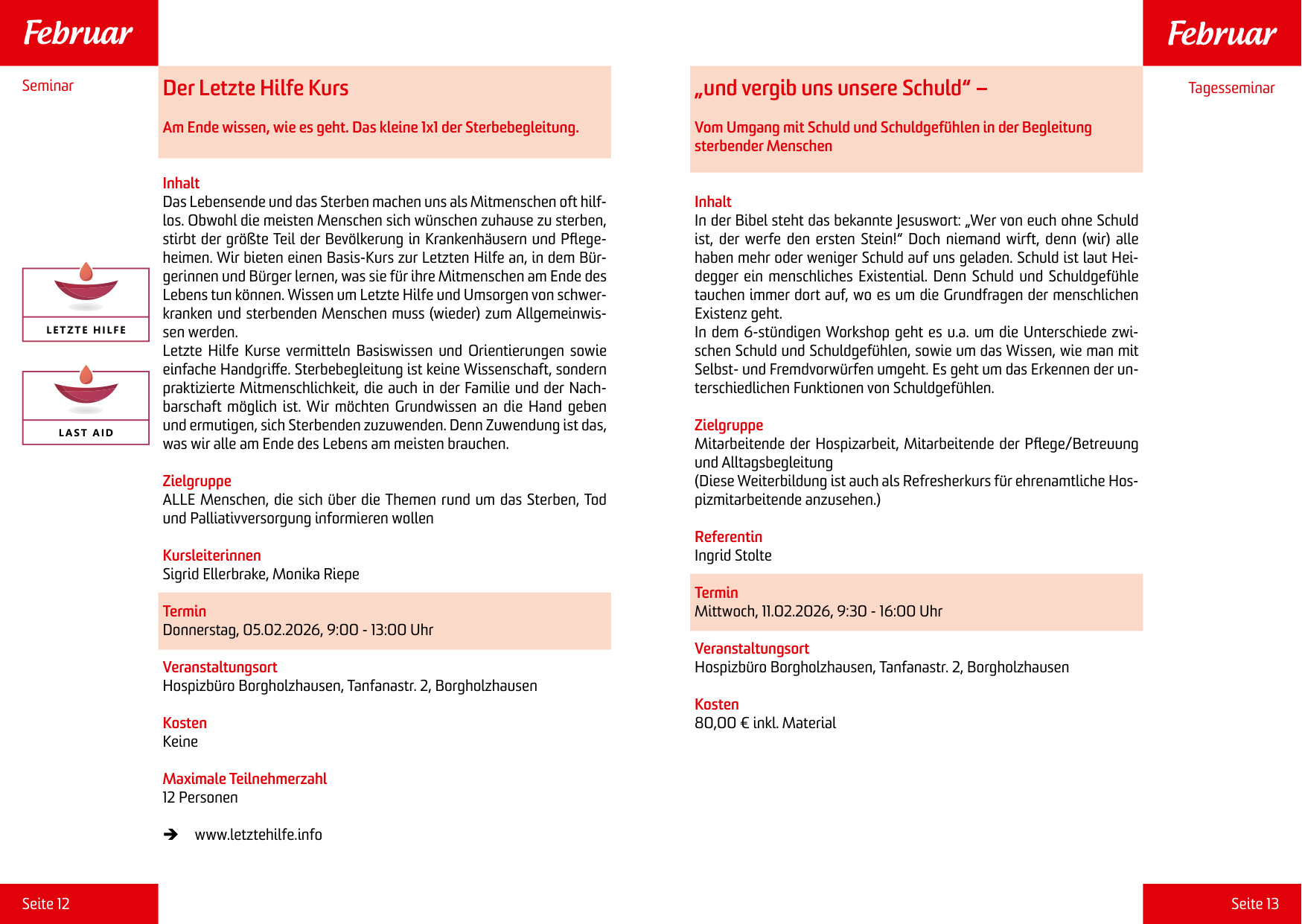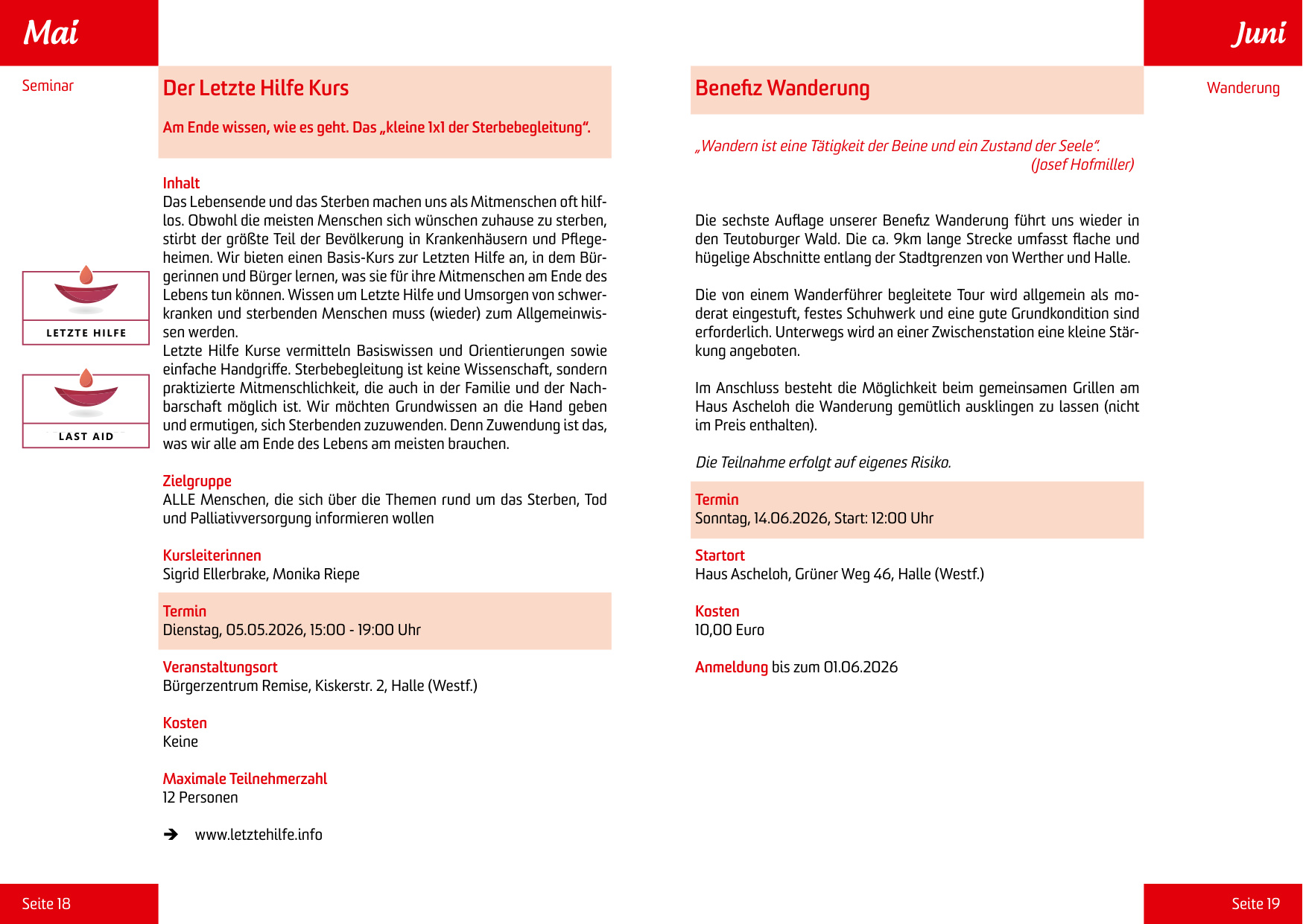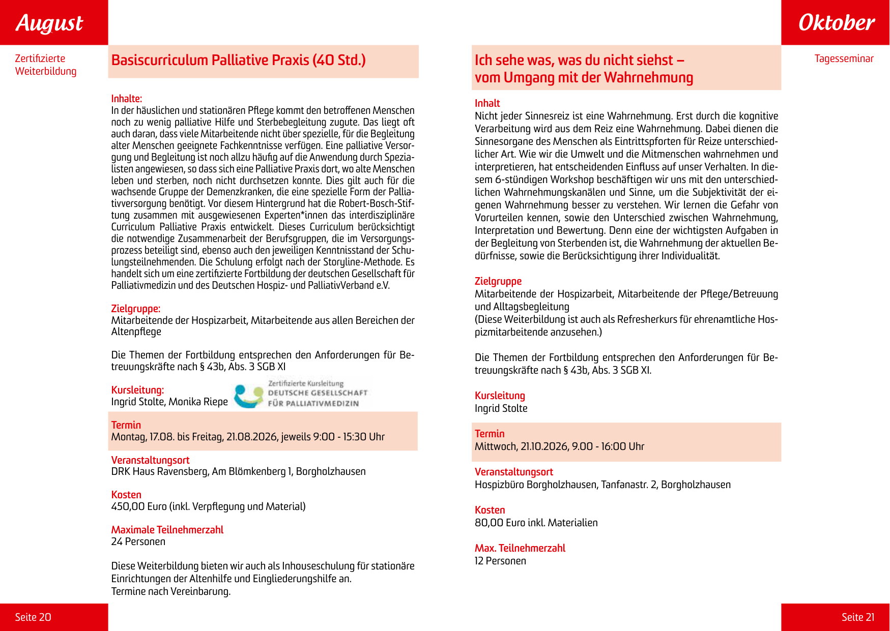 Die Befähigungskurse für ehrenamtliche Mitarbeiter der Hospizgruppe im Südlichen Landkreis Osnabrück in Zusammenarbeit mit dem Hospizverbund am Teutoburger Wald e.V. beinhalten: