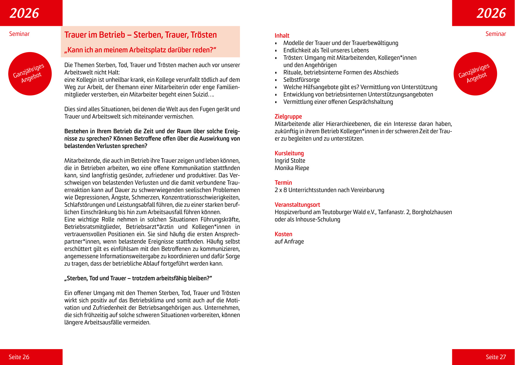 Hier besteht die Möglichkeit, dass eine geschulte Mitarbeiterin Sie individuell eine Zeit lang in der Trauer begleitet.